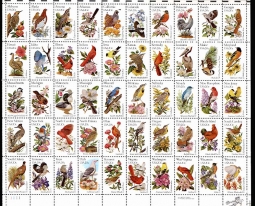 SALE! 1982 VF NH Birds and Flowers setenant sheet. Perf. 10.5 x 11.25, Line perforation. Note: this sheet was issued with dry, invisible gum.