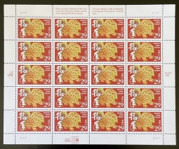 VF NH. 1997 32-cent Lunar New Year, OX, pane of 20.