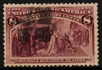 FVF used. 1893 $5 Christopher Columbus, ortrait of Colombus flanked by Liberty and an Indian Princess. Light cancel.